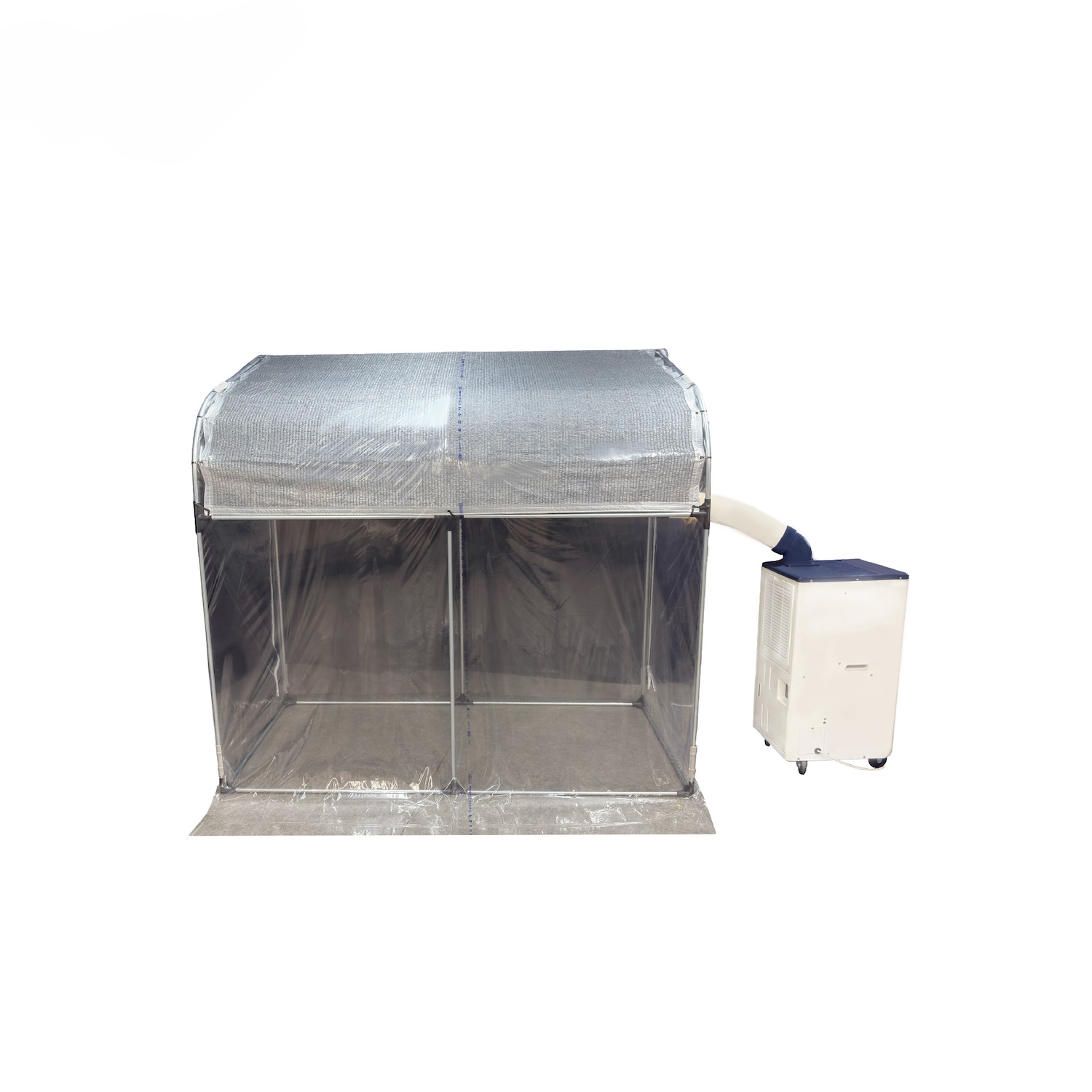 - スポットクーラーからの冷風を取り込み、簡易冷却室として夏場の熱中症対策に利用できます(室内運用)。空間を狭くすることで、より冷却効果を高めることができます。