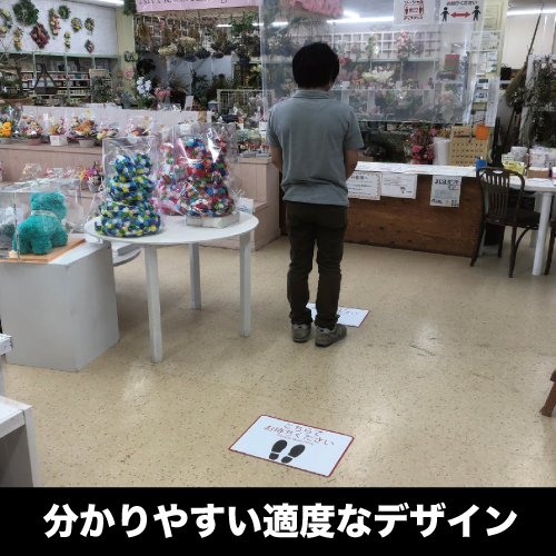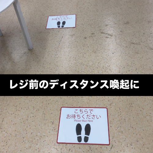 - ・マットは、レジ前やサービスカウンター前の床に貼ってソーシャルディスタンスを促すことができます