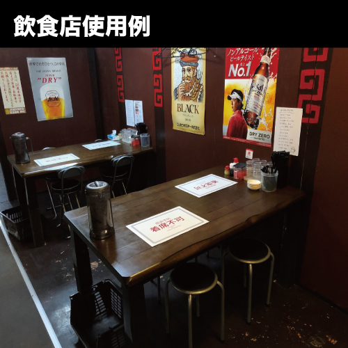 - ・シートは、待合室や飲食店の椅子やテーブルに貼ってソーシャルディスタンスを促すことができます